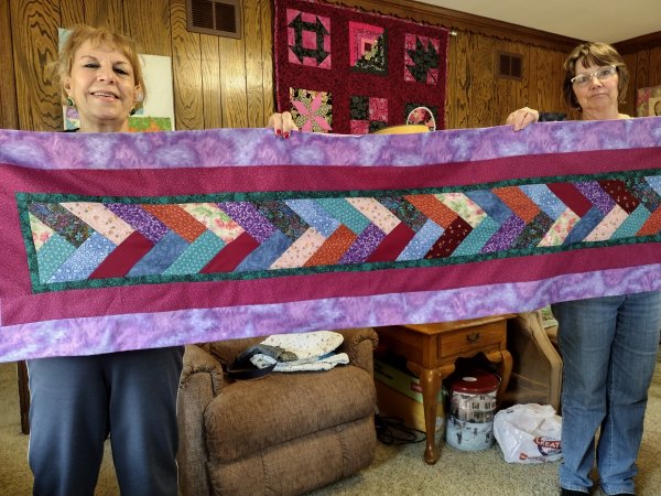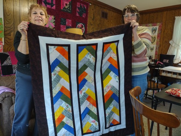 My quilting group meets once a month to work on the latest creation as a group. For the past couple of months we learned Braid in a Day. To make the braids we used Quilt in a Day’s special ruler and pattern. Most of the members used scraps to assemble their braids. Here are their works of art.