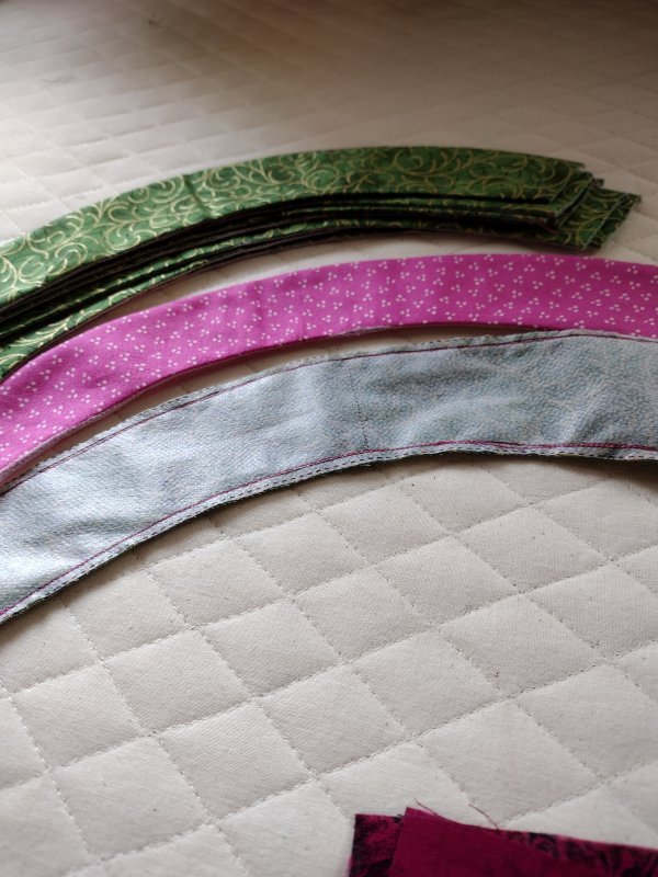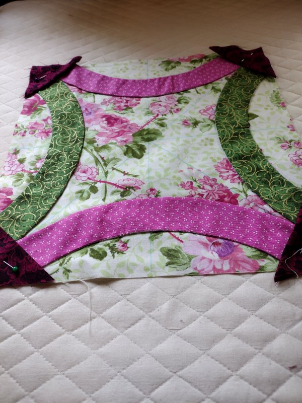 7. Fabric for background and 2 different arcs. (Solid background 1 1/8 yd, Arcs 3/8 yd of 2 different fabrics, 1/3 yd for corners)