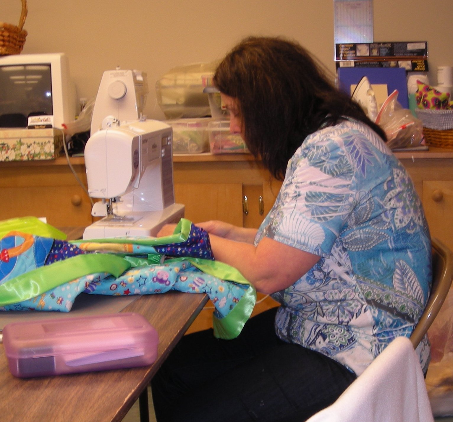 For years I loved doing free motion machine embroidery, especially before the embroidery machine made embroidery so easy. At that point I sharpened my skills on free motion quilting. Both skills were creative and I found them relaxing once I got my machine to work smoothly. One product that really helped was to use of an open toe foot free motion foot. There are not many accessory feet produced but I have found a few that give great visibility and are easy to use. Singer has some free video on how the free motion foot is used. Stippling is the term used to describe the free motion technique using small meandering S shapes to quilt the background area in a quilt.