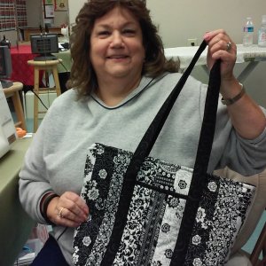 I was lucky because I found some lovely patchwork pre quilted I had purchased in white and black patchwork from Joann Fabrics years ago. I have made bias to edge the purse in black and I also selected a few black and white strips of cotton fabric I had stashed away. I will use the strips for the front flap. I also needed to prepare a solid strip of decorative stitches for the front flap. On that strip I sewed her name. I thought it would be fun to document the construction. I am using my cell phone so be kind in your reviews. I plan to make a few video’s. Here is the first step…sewing the decorative lettering.
