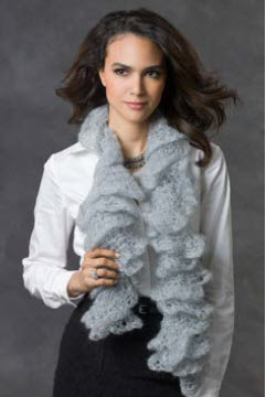 This winter Jenny’s Sewing Studio will introduce knitting and Crochet to our Hancock class schedule. I have picked easy projects to introduce you to the skills. You have to try the Red Heart® Boutiqueâ„¢ Rigoletto â„¢ ruffled scarf . You can knit it or crochet the project and both are easy and fast. In one quick lesson you will learn to create this fashion update.