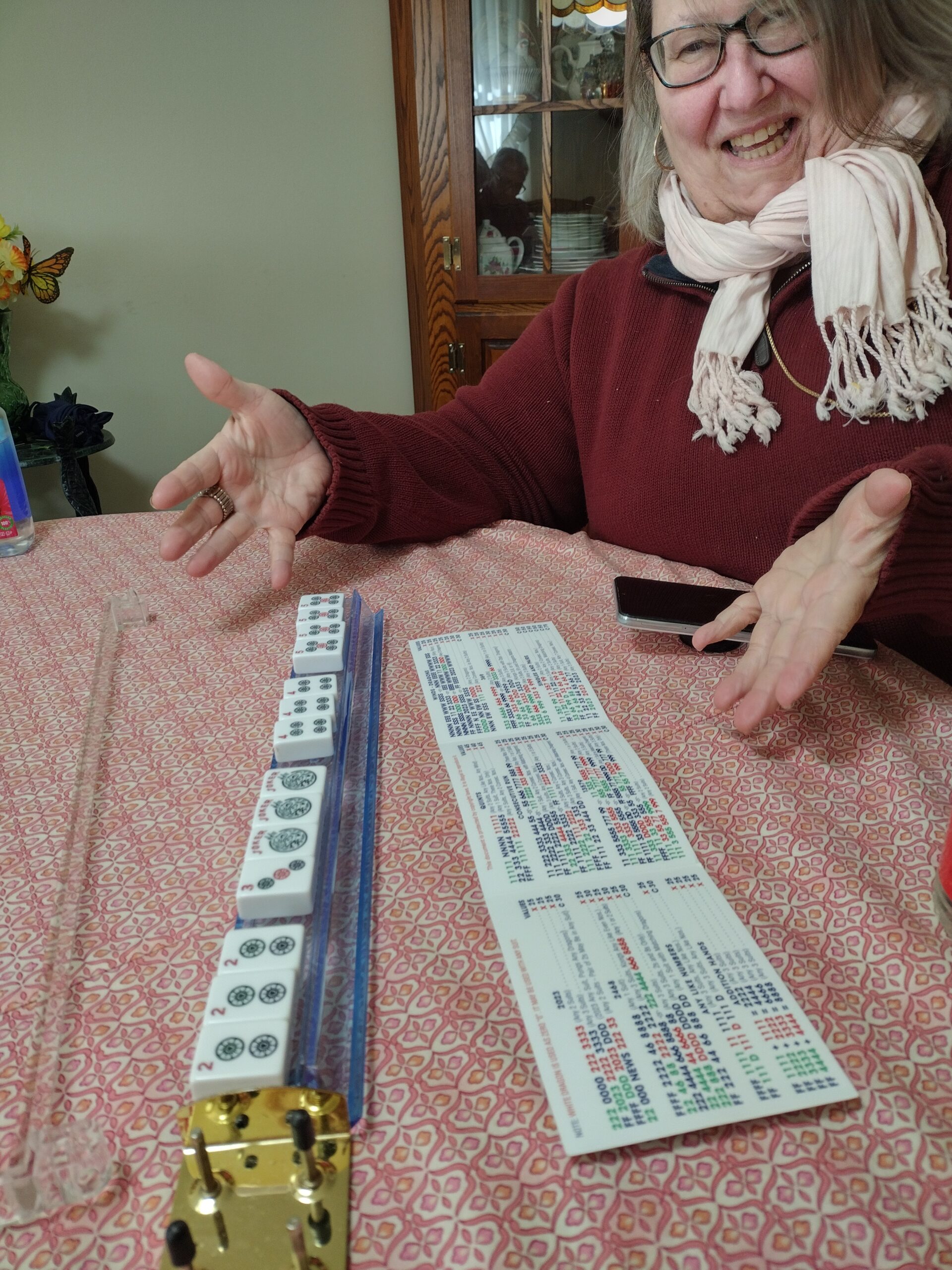 This past winter I have been suffering from leg, knee and hip pain. In order to distract myself I have been teaching Mahjong to a few friends. Here are their first wins. I will add pictures as I figure out how to get them off my phone. Every time I think I have it figured out, Google changes the procedure. Here is a start so that Elissa and Chendrika and see the moment they got the first Mahjongs.