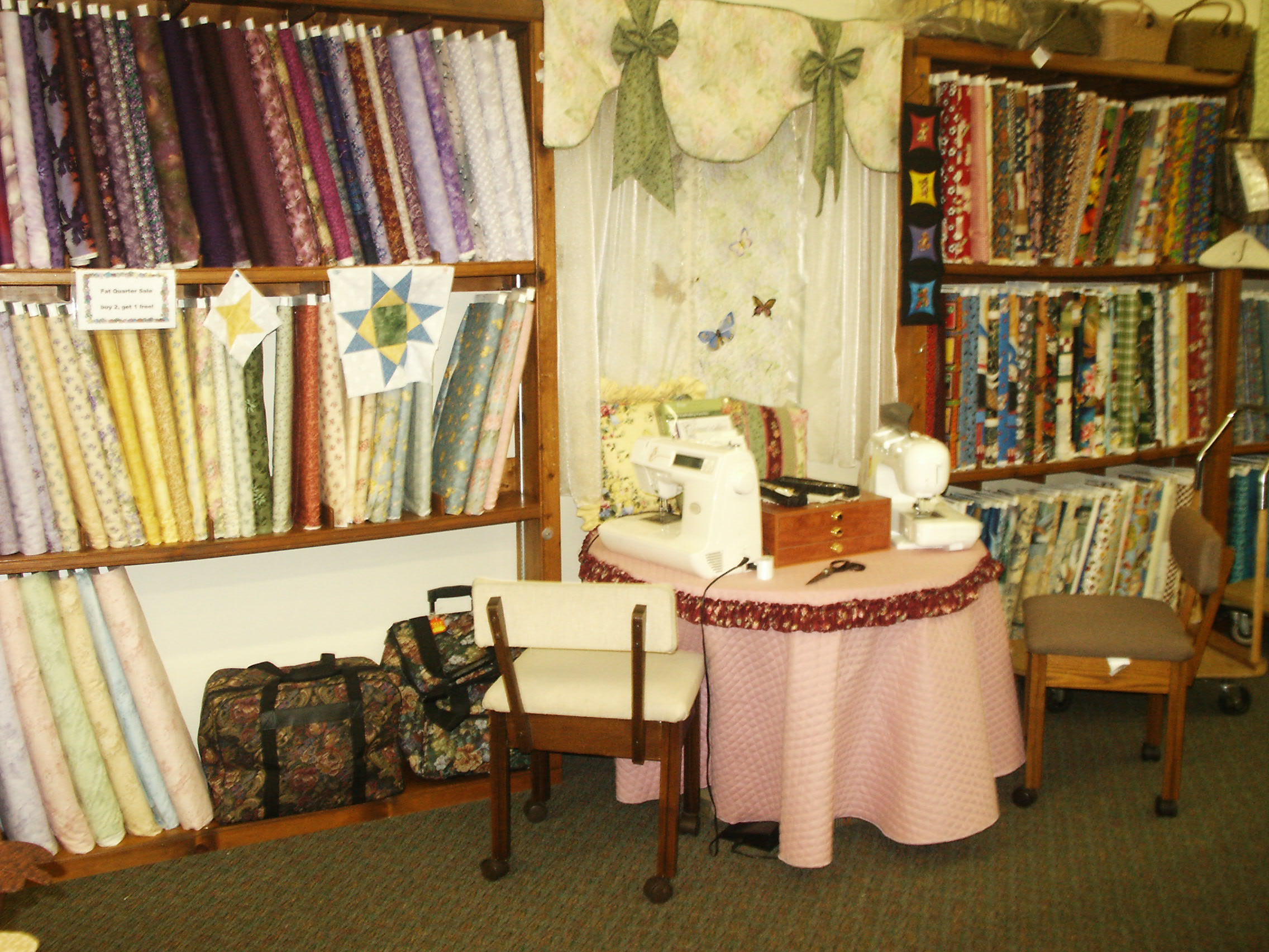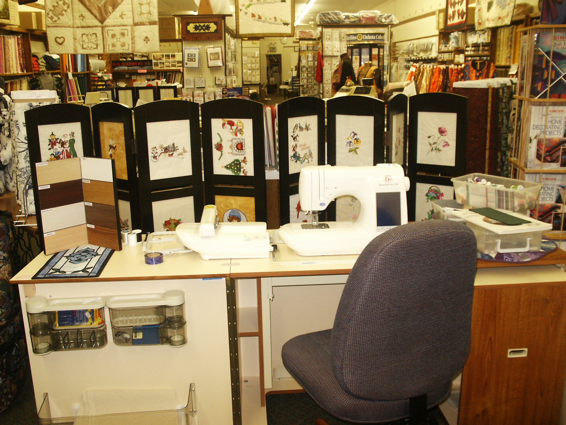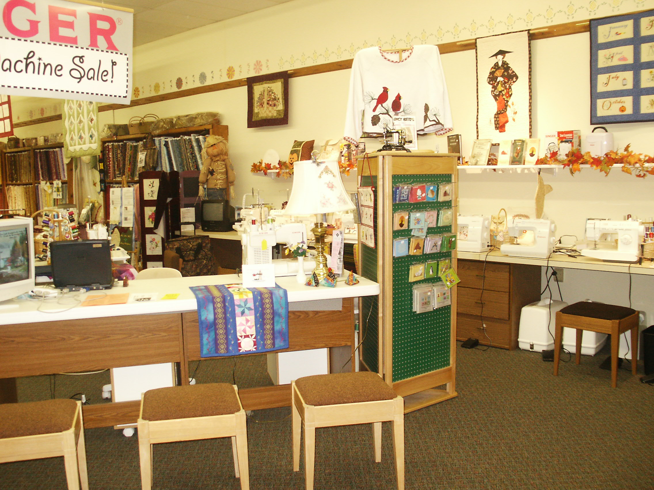 Looking back always make me smile at the great store I had in Salisbury, MD from March 1982 to June 2008. My Mom, Dad and I really created a nice store with Sewing Machine, Fabric, Notions, Parts, Sewing Classes, Free demonstrations, Sewing Machine Repairs and more. The store was always changing. I owned and operated Jenny’s Sewing Studio for 26 years and can remember very piece of inventory like it was yesterday. Take a look.
