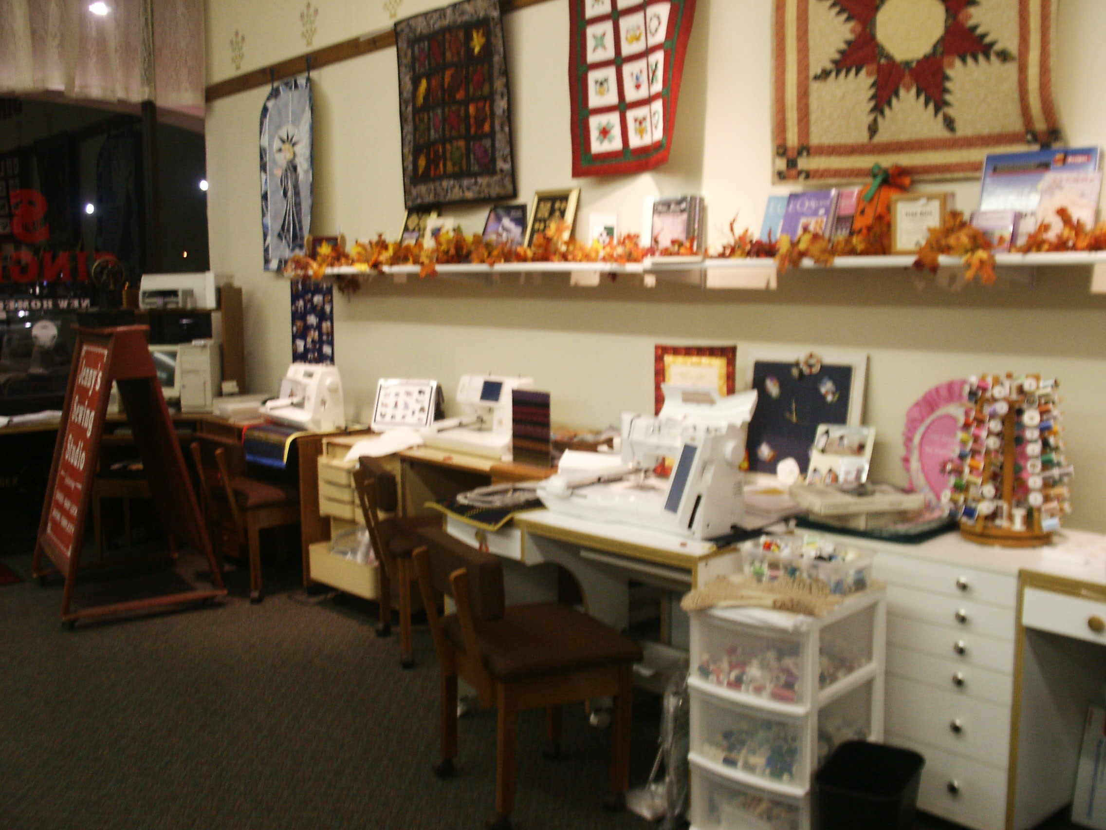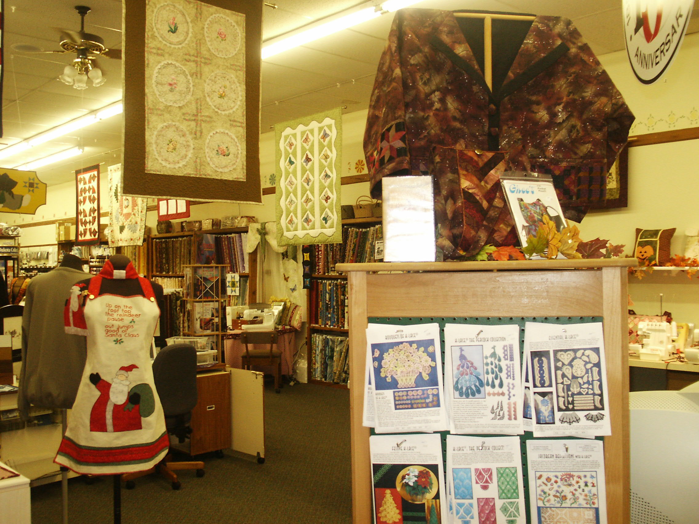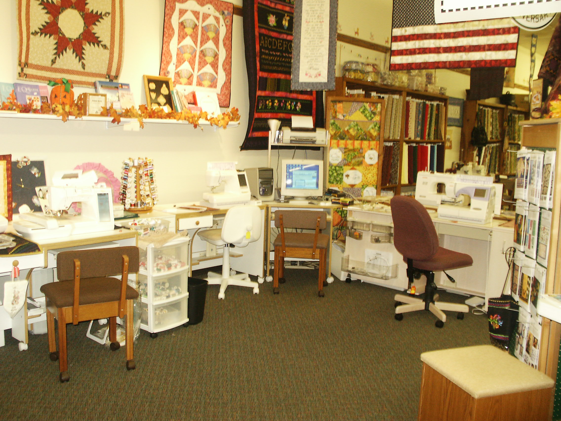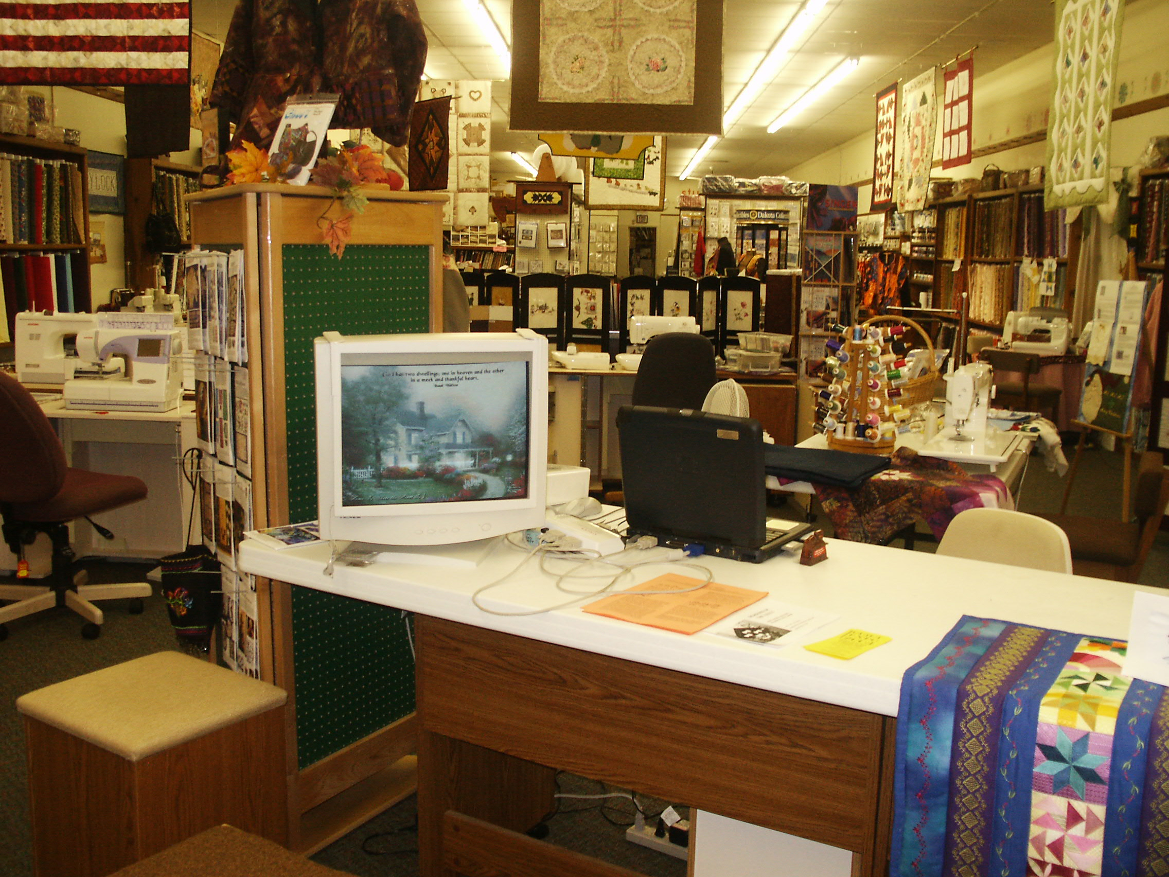 Looking back always make me smile at the great store I had in Salisbury, MD from March 1982 to June 2008. My Mom, Dad and I really created a nice store with Sewing Machine, Fabric, Notions, Parts, Sewing Classes, Free demonstrations, Sewing Machine Repairs and more. The store was always changing. I owned and operated Jenny’s Sewing Studio for 26 years and can remember very piece of inventory like it was yesterday. Take a look.