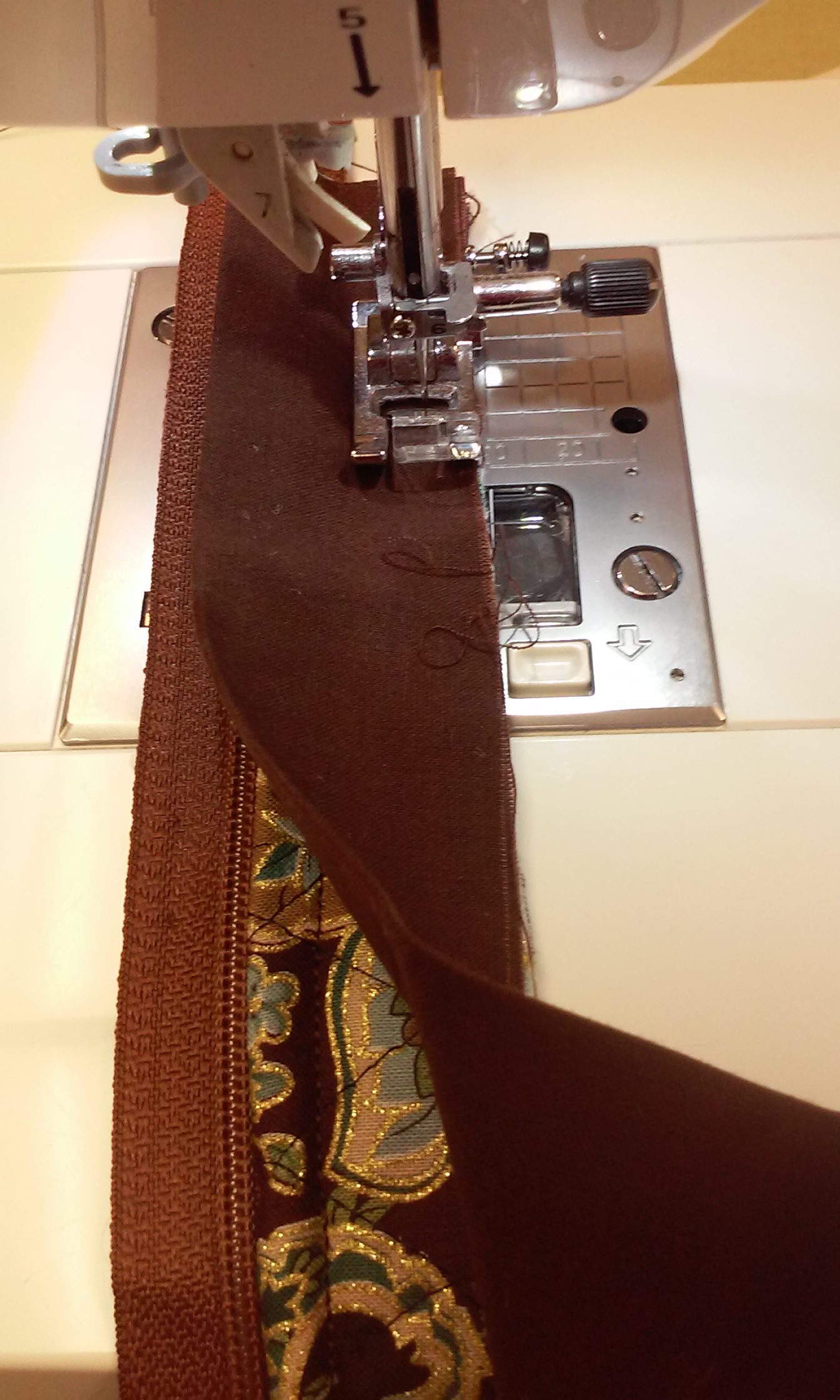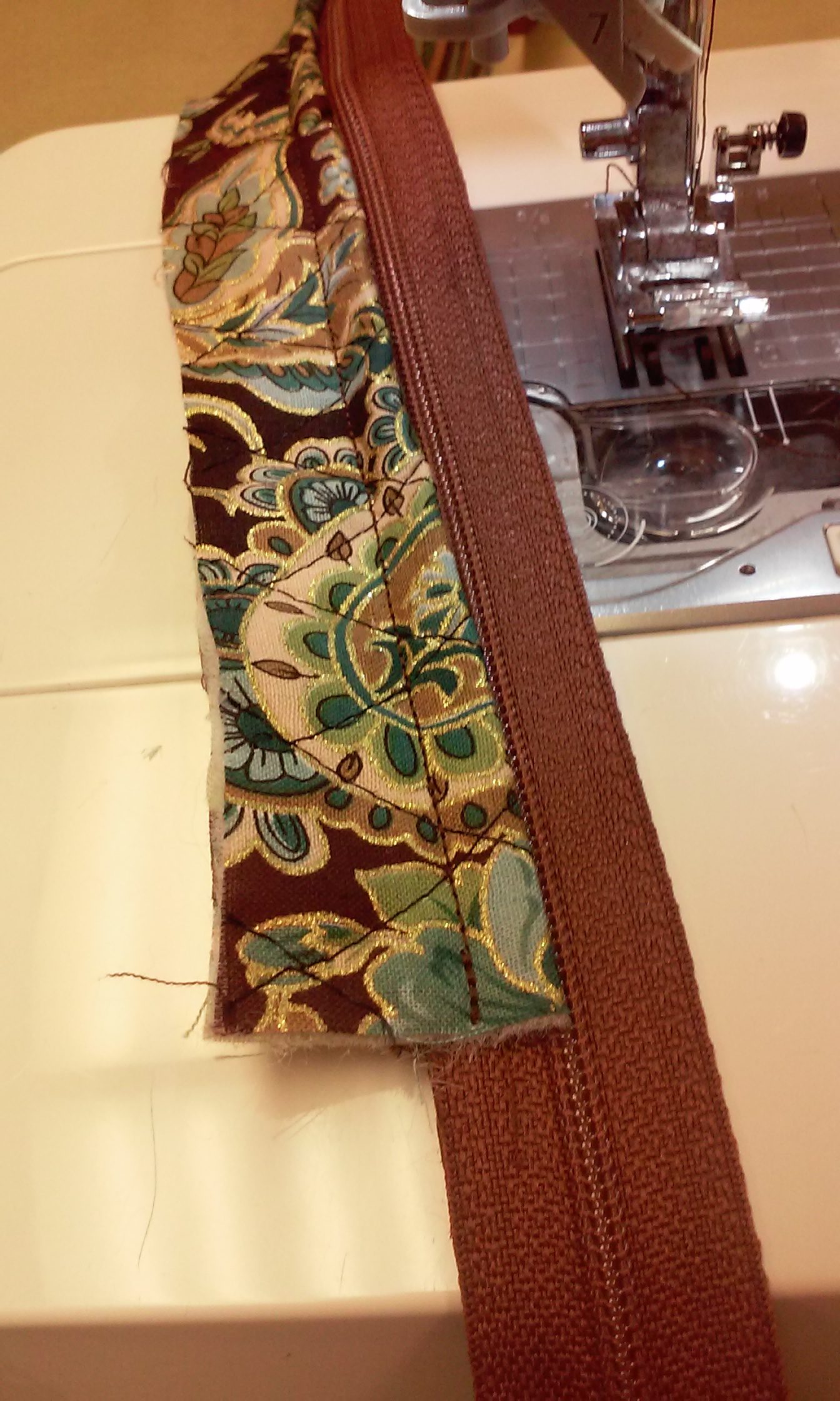 sew across the zipper ends. Make sure the zipper is inside the purse body before you sew off the ends.