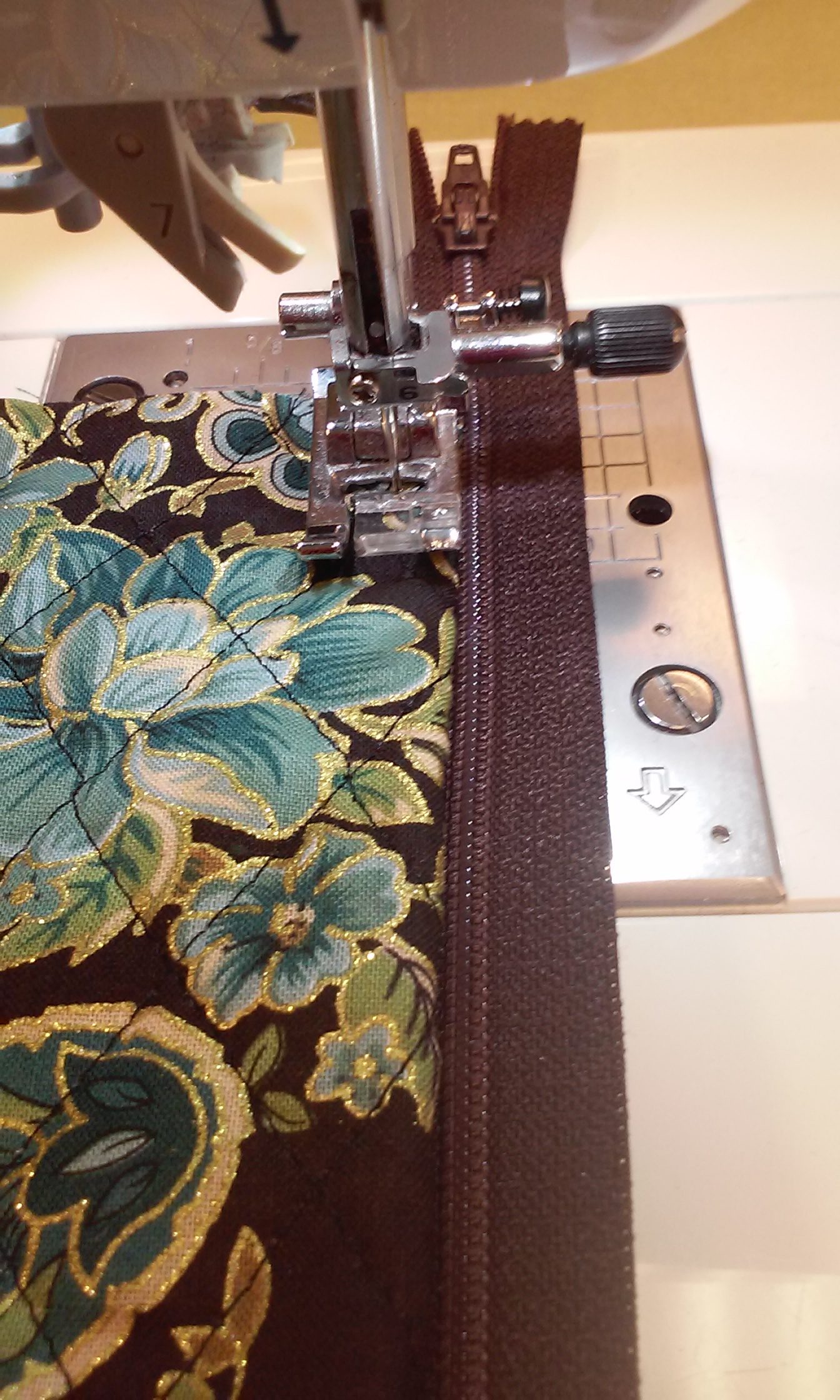 sewing a zipper to the piped pocket