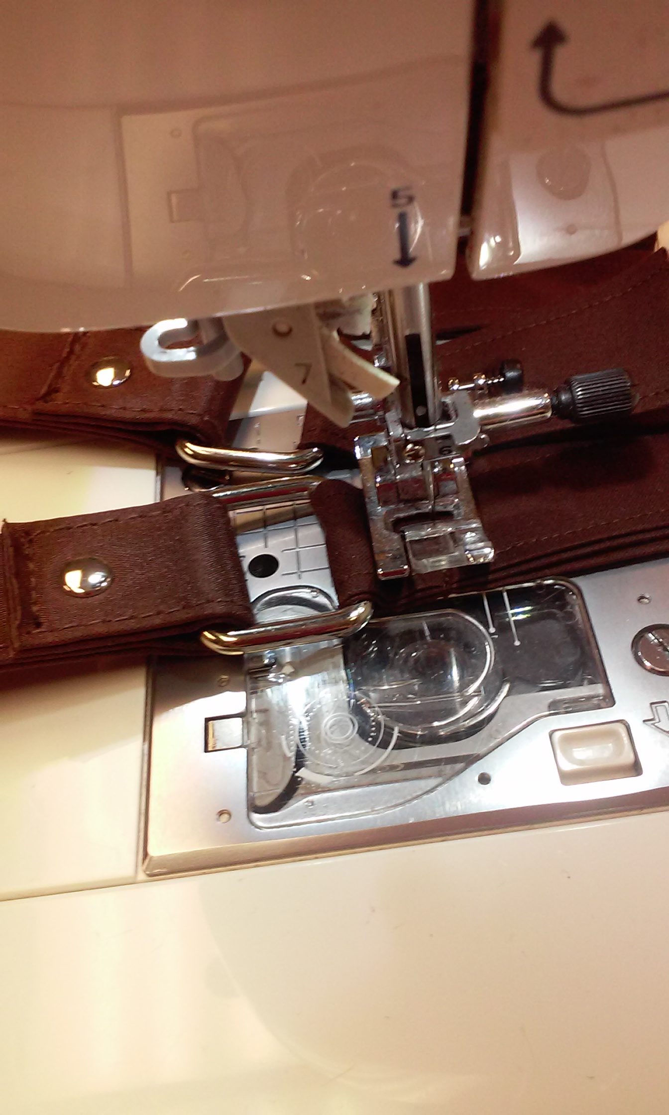 Top stitch straps in place