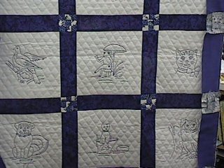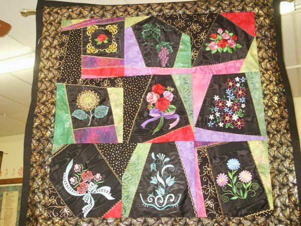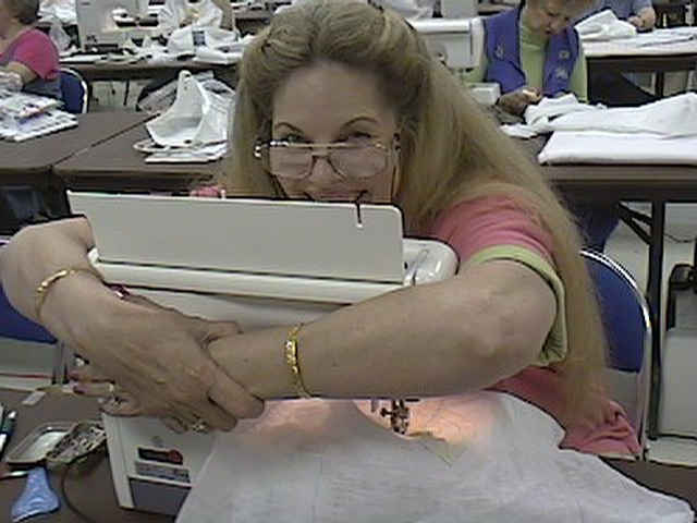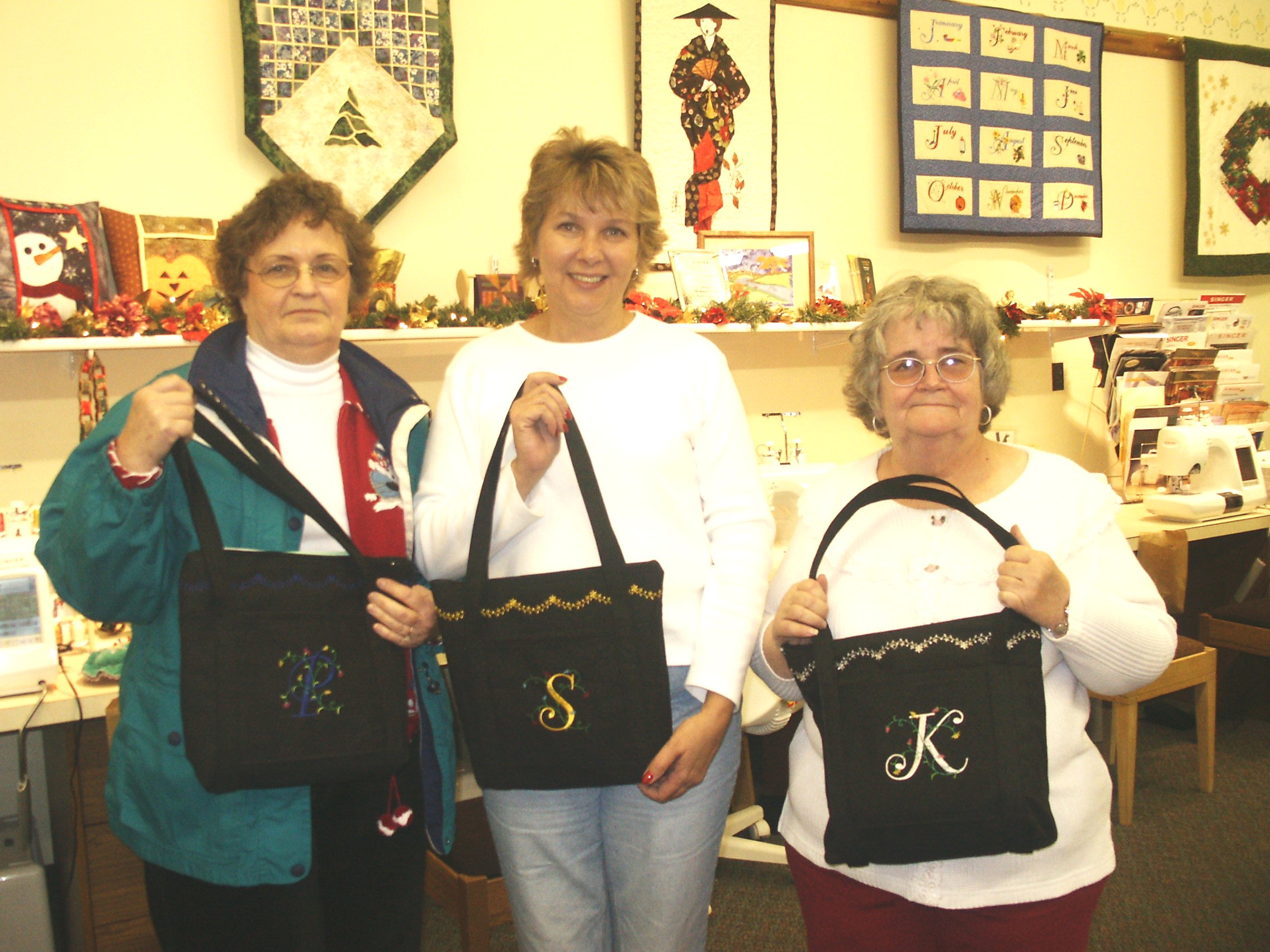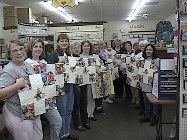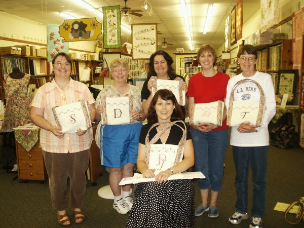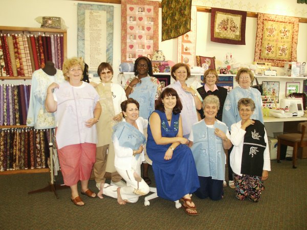 I was a very prolific sewer. So were some of my employees. We had embroidery club and sewing and quilting classes plus “Block Party”. I also had several company sewing representatives come to visit the store. Guest celebrities Kathy Fox, Jewell Hullit and Pam Warren from Singer and Connie Martin from Janome, Patsy Shields from Sulky, Lisa Shaw from Buzz Tools, Margaret Tully from Baby Lock, Eileen Roche from Designs in Machine Embroidery, Holly and Liz from Amazing Designs and more. The teachers were wonderful and always brought great ideas. That is why I am documenting the classes and samples, I can not remember all the names, there were so many.