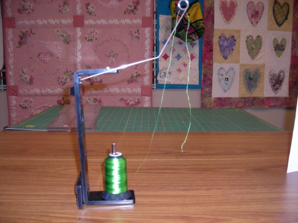 Keep thread ends from spools away from your machine while you are using it. Thread can be picked up and wound inside the hand wheel. Be careful. This will freeze up a machine fast. Ask me how I know!